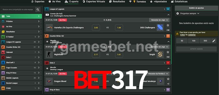 O Bet317 oferece uma grande seleção de opções de apostas em e-sports com probabilidades competitivas